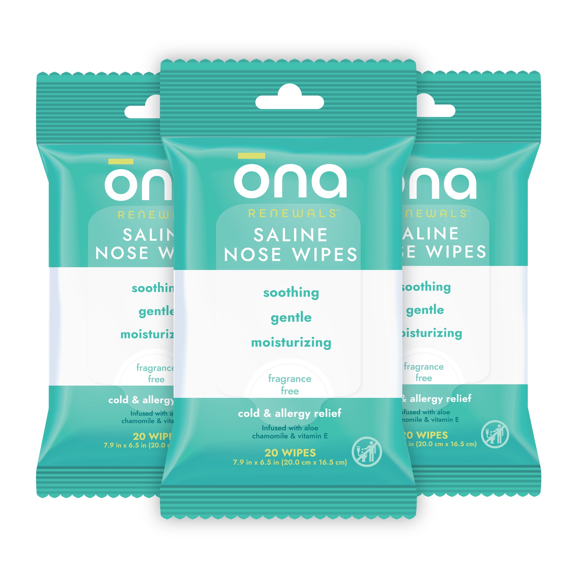 - Gentle Saline Nose Wipes for Adults: Designed to provide soothing relief for sensitive skin while effectively cleaning nasal areas. Our natural saline solution helps break down dried, stuck-on mucus when cold, allergy and flu symptoms are at their worst.